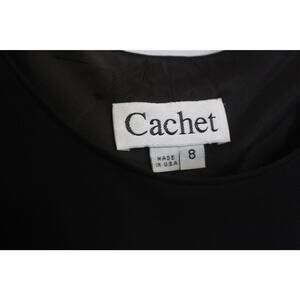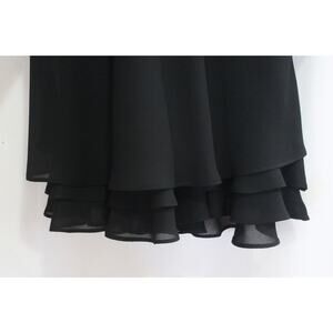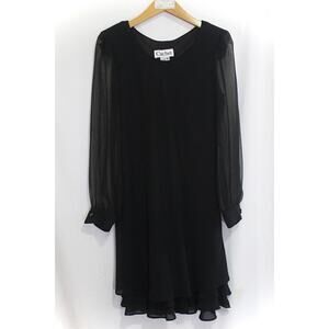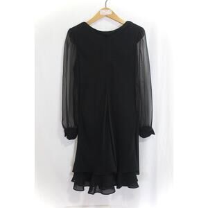 Vtg Black Cocktail Dress Sz 8 Long Sleeve Sheer Chiffon Flutter Hem CACHET USA
