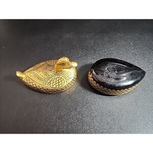 Vtg Black Gold Gilt Lacquer Box Duck/ Goose Burmese Trinket Box