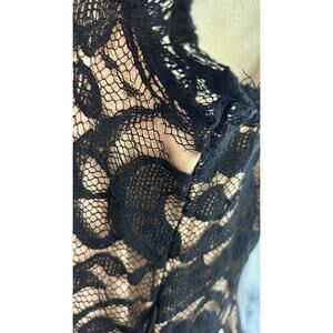 The LA Scala Vtg Black Lace Dress is a glamorous and whimsical piece perfect for a goth or punk-inspired evening. Made in the USA with a vintage charm, this XL size dress features a lined tulle design that adds a touch of retro flair. The black lace material and bouffant silhouette make it a standout choice for those looking for a unique and stylish outfit. Used item in good condition, Small area under arm with wear. No belt, see pics.