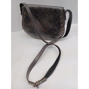 Vtg Black Leather Saddle Crossbody Handbag Foldover Connie Twist Lock Quilted