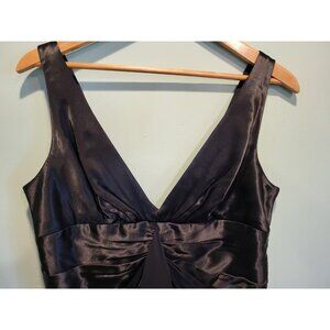 Vtg Black Satin Sleeveless V Neck Ruched Top