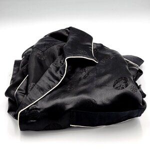 Vtg Black Silk Pajama Shirt With White Piping SIze 46