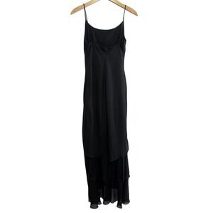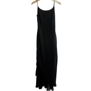 Vtg Black Slip Dress Sz 7/8 Spaghetti Strap Flutter Maxi Sheer Layered Chiffon