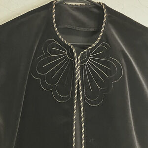 Vtg Black Velvet Vest M Metallic Sheen Rope Trim Embroidery