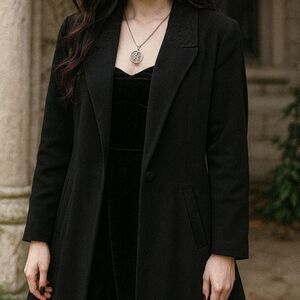 Vtg Black Wool Embroidered Collar Opera Swing Coat L Made In USA Whimsygoth