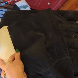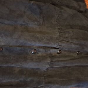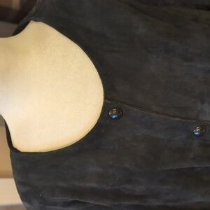 Vtg Black suede leather Snap Up chic minimalist drop waist bell sleeve midi 1X