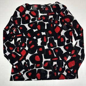 Vtg Blast Women Top Black Red White Abstract Pleated Front Scoop Neck Sheer Sz M