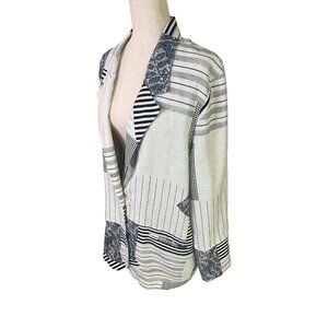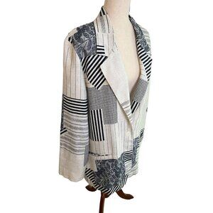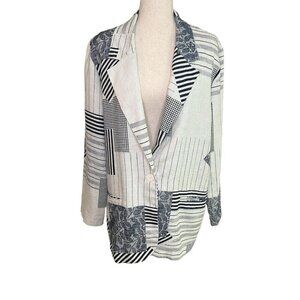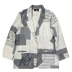 Vtg Blazer Womens L Ivory Black Floral Lace Stripe Houndstooth Patchwork Print