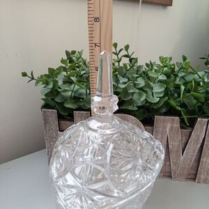 Bleikristall Anna Hutte footed 24% lead crystal covered candy dish made in Germany. This round, clear dish features a floral pattern and a glossy finish. With a mid-century modern style, this original production piece from the 1950s includes a lid and is part of the Anna Hutte product line. Hand wash only to preserve its elegant design.