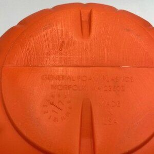 Vintage Blow Mold Pumpkin Jack o Lantern Candy Pail. 8" D. General Foam Plastics. Made in USA. Good condition. Some dents and minor paint loss. Please see photos.