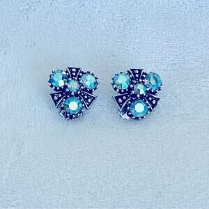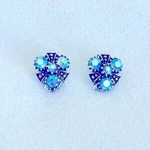 Vtg Blue Aurora Borealis Rhinestone Clip-on Earrings Shoe Clips