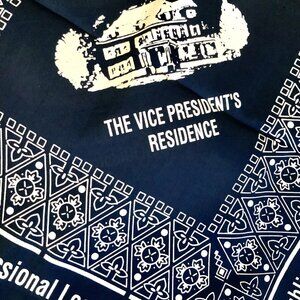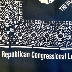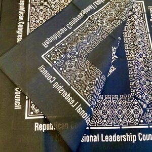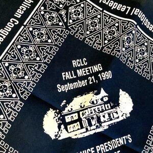 A vintage blue bandana handkerchief from the 1990s, featuring a floral pattern. It was for republican congressional leadership council meeting on September 21, 1990. It is considered political memorabilia. This is a lot of 4 pieces.