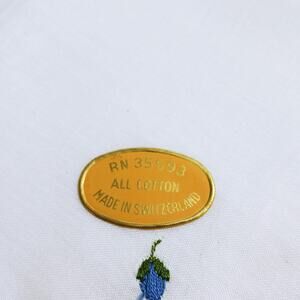 Vtg Blue Floral Embroidered Handkerchief Cottagecore Hankie Switzerland NOS