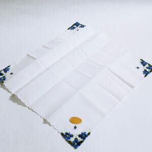 Vintage Blue Floral Embroidered Handkerchief Scalloped Edge Cottagecore Hankie Switzerland NOS