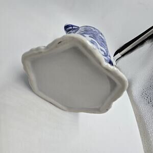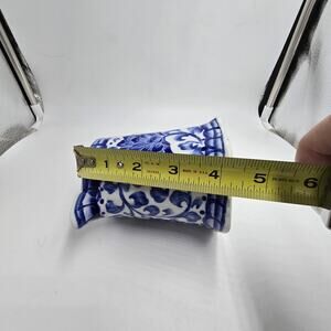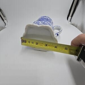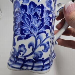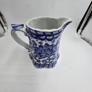 Vtg Blue White Porcelain Pitcher Vase Andrea By Sadek? Floral Chinoiserie 4.5"H