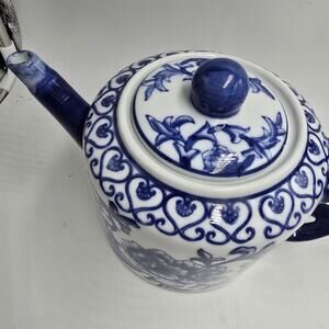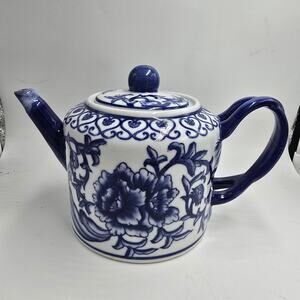 Vtg Blue White Porcelain Teapot Bombay Co Chinoiserie China Ceramic Porcelain