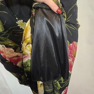 Vtg Boat Neck Large Floral Print Midi Dress Ciffon Feminine Korean Roses Large