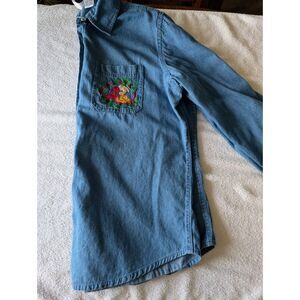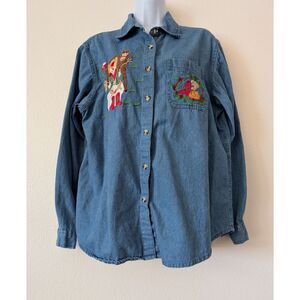 Bobbie Brooks Christmas western embroidered denim button down shirt
