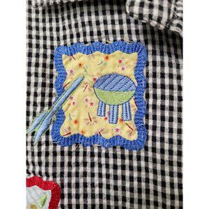 Vtg Bobbie Brooks Womens Black Gingham Short Sleeve Button-Up Shirt M Patchwork