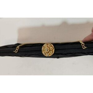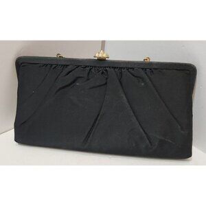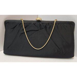Vtg Bobbie Jerome Black Fabric Evening Purse Satin Interior W/Gold Chain & Clasp