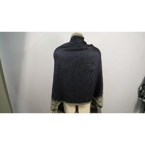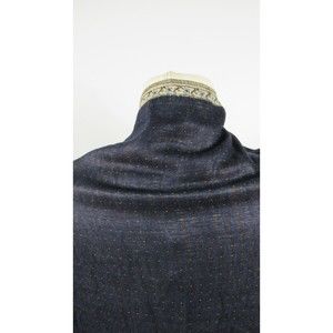 Vtg Boho Indigo Blue Paisley Shawl Wrap Gold Metallic Lame Textile