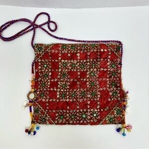 Vtg Boho Mirrored Embroidered Embellished Indian Envelope Crossbody Bag Dowry OS