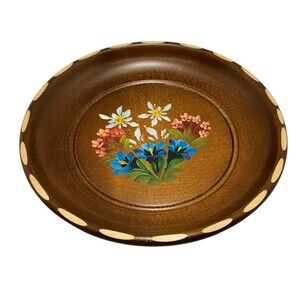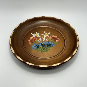 Vtg Boho Swiss Hand-Painted Floral Flowers Toole Design Wooded Dish 7" MCM Tray