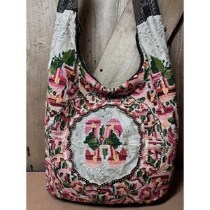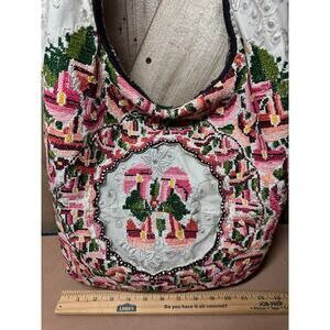 Vtg Boho XL Hand-Stitched Embroidered Sequin-Festooned Indian Shoulder Bag