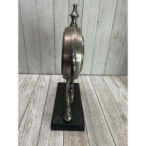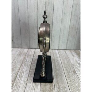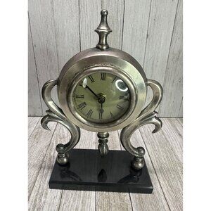 Vtg Bombay Pewter Desk Mantle Quartz Clock with Granite Base For Parts Only