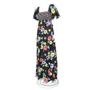 Vtg Bonwit Teller Floral Cottagecore Smocked Angel Sleeve Maxi Dress XS/S - 641