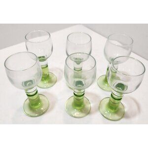 Vtg Bormioli Rocco Italy Limoncino Cordial Green Footed Shot Glasses Set Of 6