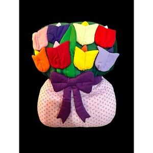 Vtg Bouquet Of Spring Tulips Plush Wall Decoration Or Pillow Cotton Colorful