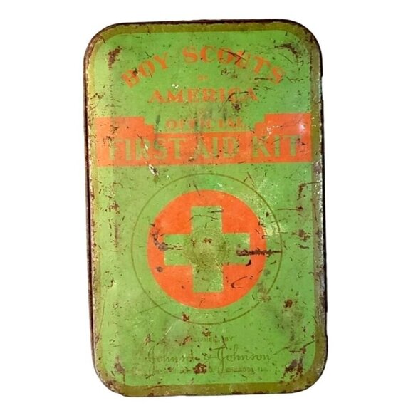 Vtg Boy Scouts Of America Official First Aid Kit By Johnson & Johnson Tin 1950s