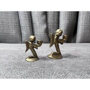 Vtg Brass Kneeling Angels Mini Small Candle Holders Incense Lot of 2