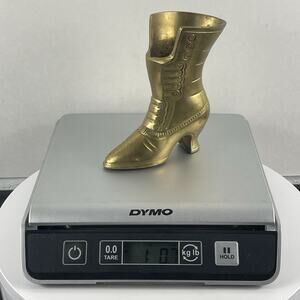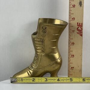 Vtg Brass Ladys Victorian Lace Up Boot Shoe Vase Home Decor 5”
