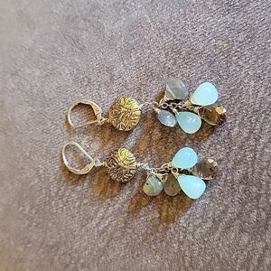 Vtg Brass Moonstone Labrodite Dangle Drop Leverback Hook Earrings