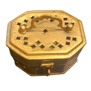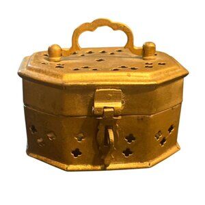 Vtg Brass Octagonal Cricket Trinket Incense Footed Box India