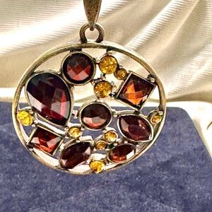 Vtg: Brassy Gold Toned Dragon Red & Amber Pendant Choker Necklace