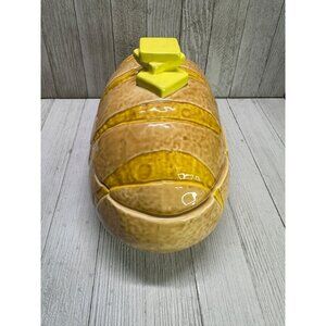 Vtg Bread Loaf Serving Dish Canister Cookie Jar Ceramic w/ Sliced Butter Handle