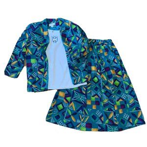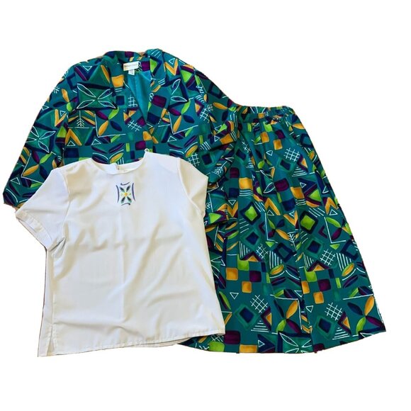 Vtg Brenda Goode Skirt Suit 3 Piece Jacket Top Set Blouse Dress Shirt USA XL
