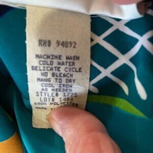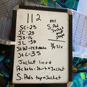 **Both shirt and jacket have shoulder pads. One pad in jacket seems out of shape.