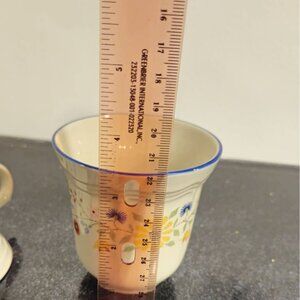 This vintage stoneware mug and saucer set features a charming Heritage Pattern with birds and flowers. Ideal for collectors or daily use, the 4-piece set adds a classic touch to any kitchen or dining area.