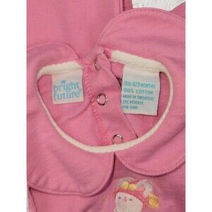 Vtg Bright Future Baby Romper 6/9M Pink Embroidered Rabbit Easter Outfit