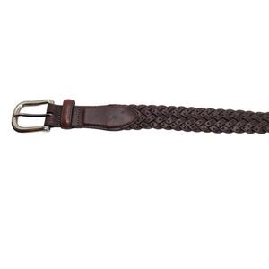 Vtg Brighton Mens Braided Leather Belt 36 Brown Silver Buckle Weaved Country