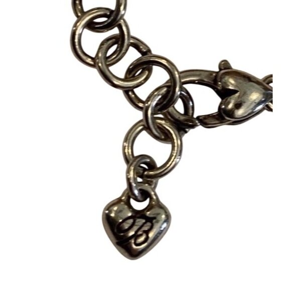 Silver tone or silver plate. Brighton Townsend vintage Silver Circle Necklace. This Necklace Has Various Size Granulation Design Circles Connected with Silver Chain That Fastens with A Decorative Heart Lobster Claw Clasp. Brighton B Signature Logo Heart Charm. Dimensions: 18” to 20” Adjustable length by 2”. This piece is very tarnished.