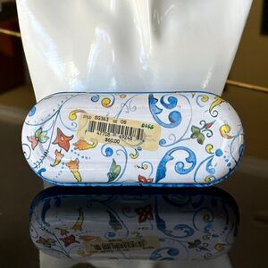 Vtg Brighton White Hardshell Metal Glasses Sunglasses Case Blue Yellow Filigree