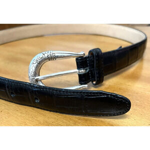 In very good condition. Size L, 37.5” length (fit best 34"), 1” wide in black. Croc embossed, silver buckle. Western