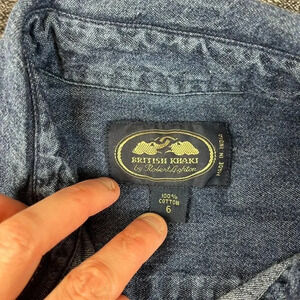 Vtg British Khaki Embroidered Horse Denim Button Up Women's 6 Chambray. **Missing button on sleeve and embroidery has some flaws in stitching. Refer to all photos for condition and sizing.