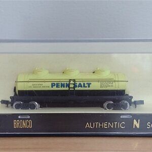 Vtg Bronco Authentic N Scale 42' Three Dome Tank Car Penn Salt