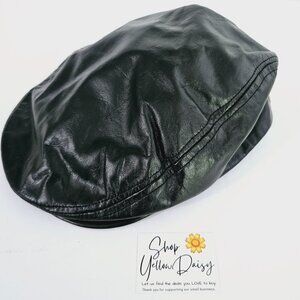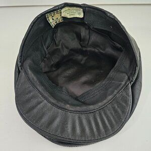 Vtg Broner Newsboy Cabbie Genuine Leather Ivy Cap Hat USA Sz S Black《818》A